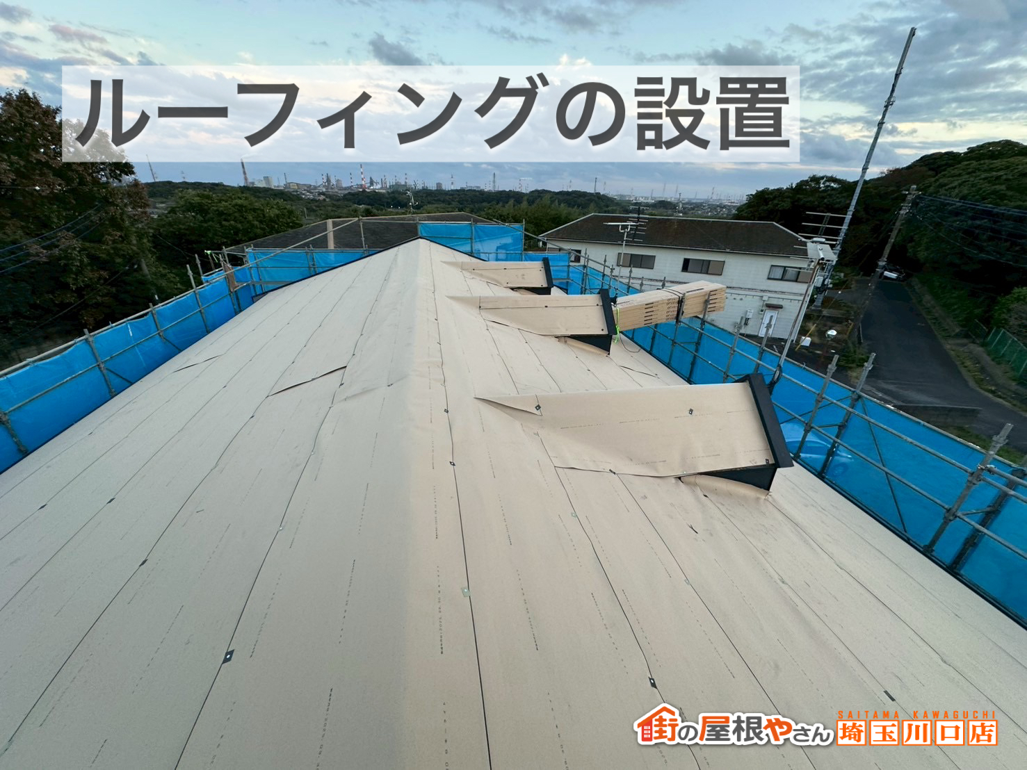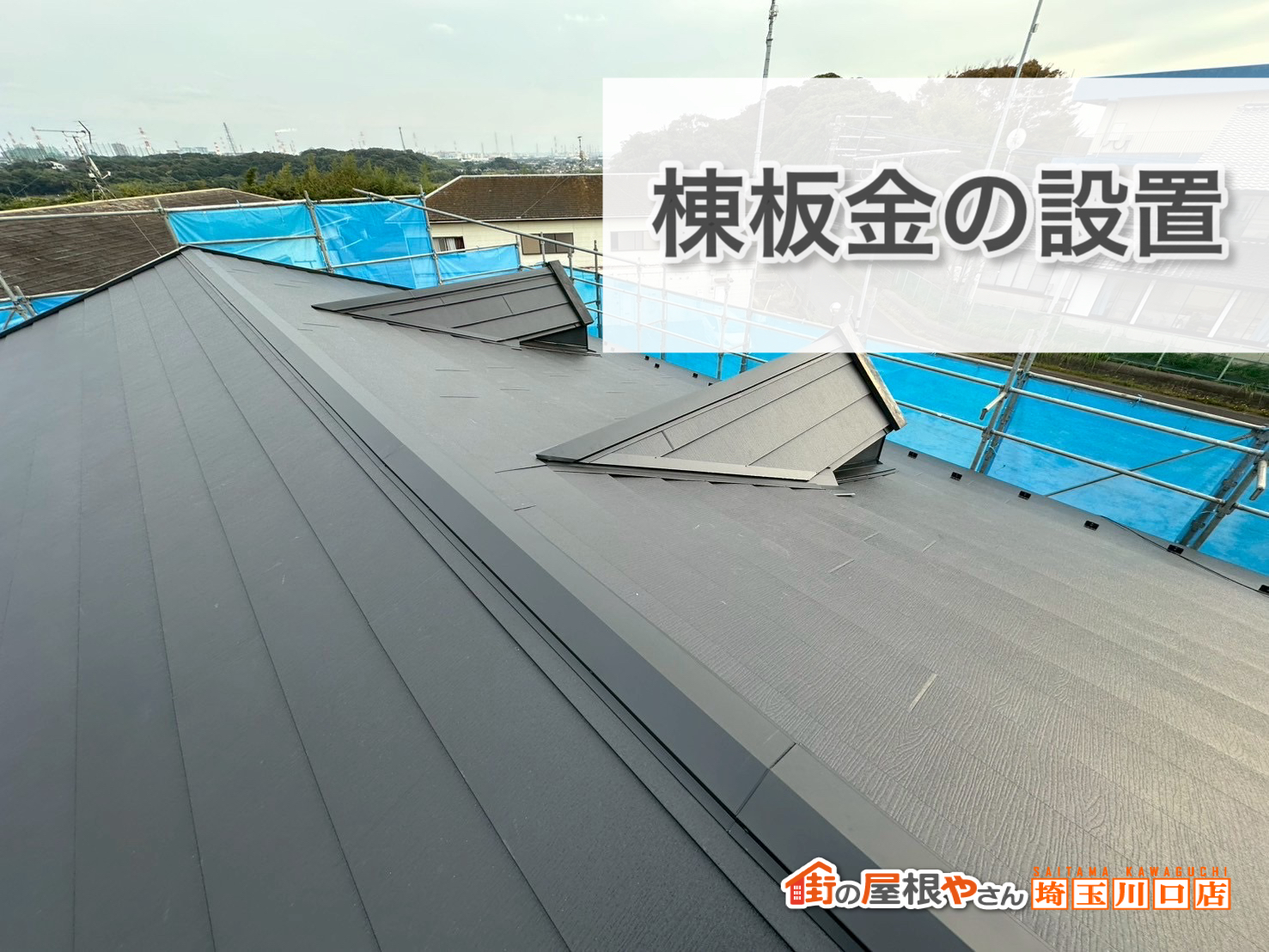 屋根材をすべて葺き終えたら、屋根の頂点部分に棟板金(むねばんきん)を取り付けます。