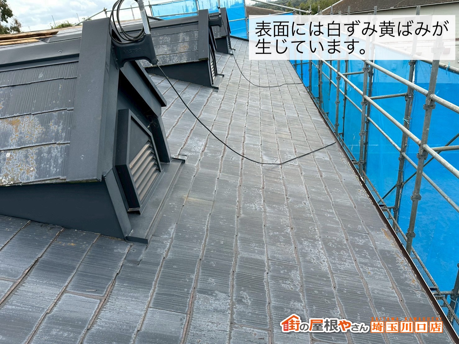 スレート材は表面に塗装による防水層があり、それが紫外線や雨で徐々に劣化すると、屋根が水分を吸収しやすくなります。
