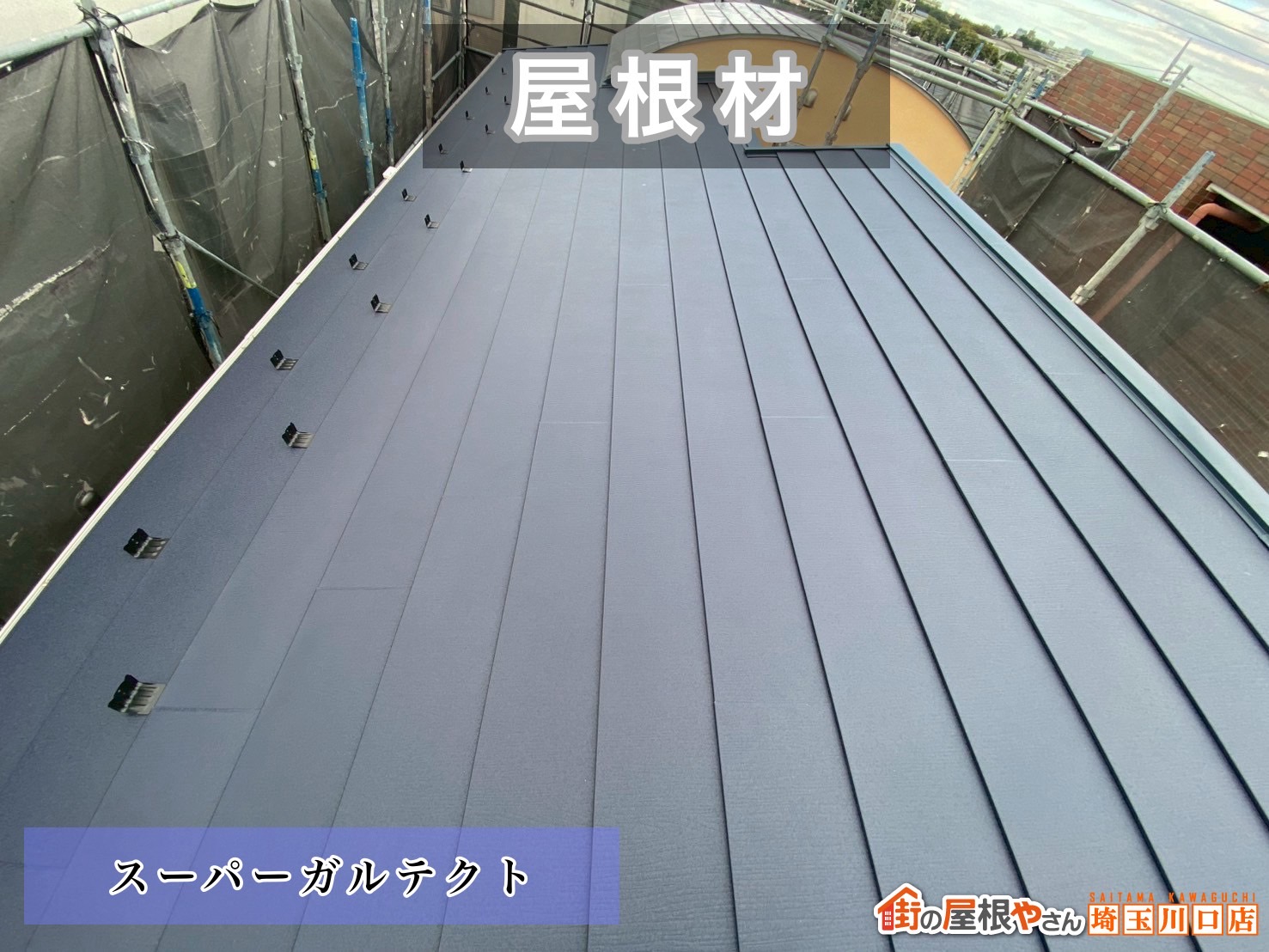 次に進めていくのは屋根材の設置!スーパーガルテクトのブルーを使用!